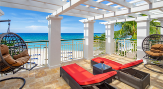 Suites feature a view of the ocean. Additional amenities include a wrap-around balcony with a hot tub, three bathrooms, elegant Jamaican-inspired design with modern décor, a mini-fridge stocked with beer, soda and water; a coffee/tea brewer with premium roast coffee and tea, a full kitchen with stainless steel appliances and granite counter tops, a washer and dryer, high-speed Wi-Fi, large flat screen HDTVs, an in-room safe, individual climate control, luxury bath products, and luxe linens, plush bedding and include butler service.