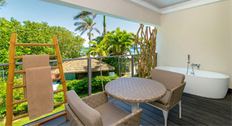Suites are located in the Wood & Water or Bamboo building, and feature a view of the gardens. Additional amenities include a whirlpool that may be located on the balcony or inside select suites