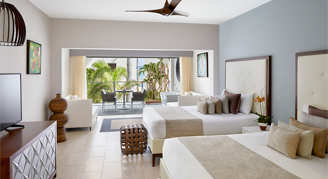 Suites are located in the Blue Mountain or Bamboo building, and feature a view of the ocean. Additional amenities include direct access to a private pool and whirlpool from the terrace.