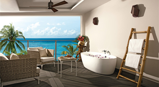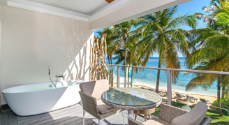 Suites are located in the Wood & Water or Blue Mountain building, and feature an ocean view. Additional amenities include a whirlpool on the private balcony.