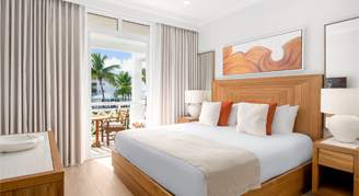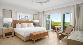 These newly renovated, spacious deluxe studios have partial-ocean views facing Grace Bay Beach. Each studio features a king bed, a terrace, and a bathroom with a stand-up shower.