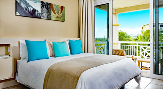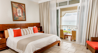 The Two-Bedroom Suite features balconies with partial views of the ocean, pool and gardens. The master bedroom is equipped with a king or queen bed, a flat-screen TV and a full ensuite bathroom with a separate tub and shower. The second bedroom offers either a king or a queen bed, a flat-screen TV and a full bathroom with a separate tub and shower. The living room features a sleeper sofa, a half bathroom, and a flat-screen TV.