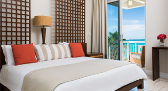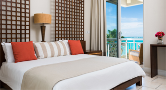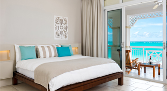Oceanfront Studios overlook Grace Bay Beach and afford ocean views from the balcony or terrace. Each studio features a king bed and a bathroom with a stand-up shower.