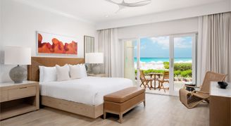 These newly renovated, spacious Oceanfront Deluxe Studios have direct ocean views facing Grace Bay Beach. Features a king bed, balcony or terrace, and bathroom with a stand-up shower.