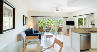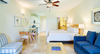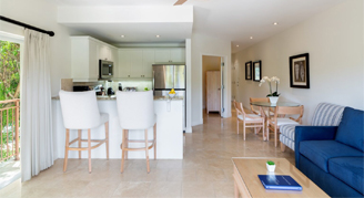 Villa del Mar offers 48 units including studios, and one- to three-bedroom units. All are impeccably designed with elegant style and décor including Tommy Bahamas furnishings, a kitchen or kitchenette, travertine floors, granite countertops, stainless steel kitchen appliances, and large, furnished balconies with views of the lush grounds.
