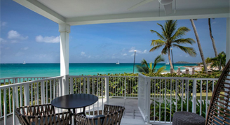 An oceanfront retreat on the second floor with panoramic Morningstar Beach and Caribbean Sea views.