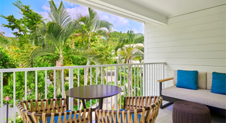 Relax on your private balcony, immersed in a tropical garden, steps from the beach's white sands.