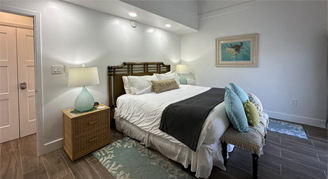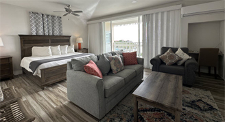 Suite accommodates up to four people and features full residential amenities in a tropical beach setting. Your condominium will have a private room with a king bed, private bathroom, and living area with comfortable furnishings including a couch that pulls out into a full-size bed. Ground units feature a patio and second and third floor units feature a balcony.