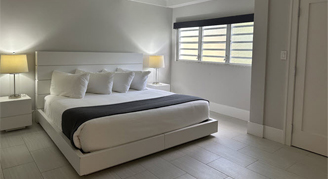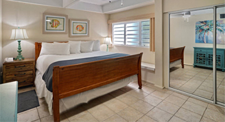 Suite accommodates up to four people and features full residential amenities in a tropical hillside beach setting. Your condominium will have a private bedroom with a king bed, private bathroom, and living area with comfortable furnishings including a couch that pulls-out into a full-size bed. Hillside units are tucked into the hillside above the beachfront units and comprise three 3-story buildings surrounding the freshwater pool. Access is via stairs from the main parking lot up the hillside to the units. Ground units feature a patio and second and third floor units feature a balcony.