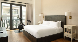 Feel at home in a Den Room, a functional, chic space where luxurious appointments and simple pleasures await. A spot for your coffee, plugs for your laptop and 100% cotton sheets on a king-size bed. In-room amenities feature Lavazza brewing systems, Matouk bathrobes and Jonathan Adler bath products, Enseo smart TV programming and vinyl record player, beverage center cooler, yoga mat and Wi-Fi. This interior-facing room has an obstructed view.