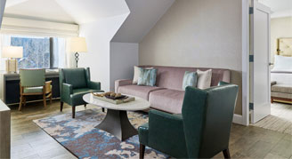 Enjoy Vail in style in your spacious Grand Suite, offering 460 to 700 square feet of comfort and sophistication. The suite features a king bed and a separate living room with ample space to relax.