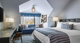 Experience the beauty of the mountains from the comfort of this Main Lodge room. The elegant space is designed for both relaxation and rejuvenation; the room offers warm alpine-inspired décor and premium in-room amenities.