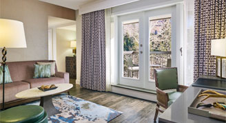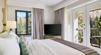 Elevate your experience in Vail with partial mountain views, a living room and a private bedroom. This suite is also appointed with two bathrooms and a private balcony.