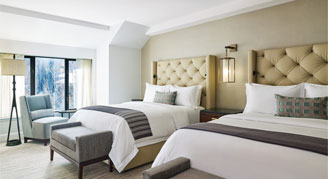 Take in stunning views of Gore Creek and the surrounding mountains from this deluxe room. Inside, you’ll find two queen beds, a sleek, marble-tiled bathroom, and an expanded dresser space for longer stays. Ideal for travelers looking to stretch out and settle in, the room blends thoughtful details with the beauty of Vail’s alpine setting.