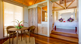 The crystal-clear lagoon is a snorkeler's paradise and a haven to a myriad of tropical fish. This resort is ideal for couples and honeymooners who are looking for an intimate hideaway offering peace, tranquility, and personalized service. The hotel welcomes guests 18 years and older.