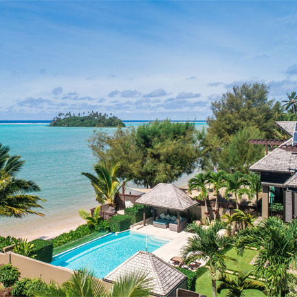 Rarotonga, Cook IslandsLocated on beautiful Muri Beach, this exclusive beachfront gated resort offers beautiful tropical gardens and unsurpassed views of Muri Lagoon and nearby islets.