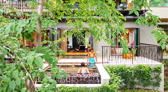 Suites feature a tropical forest view. Additional amenities include a separate living space and work area and a private plunge pool.
