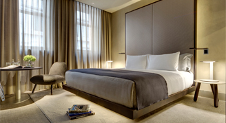The refined atmospheres of ME Milan Il Duca pay homage to the great masters of Milanese design. Simple, elegant rooms are marked by soft hues such as amber and ecru.