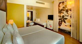 Rooms offer a relaxing combination of design, originality and minimalist style. Décor includes calming neutral tones with a pop of color.