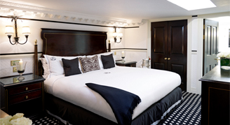 The rooms are individually designed in the signature black and white theme, seamlessly blending refined style with traditional comforts, including fine linens and handmade British mattresses. Room amenities include high-speed internet access, On Demand movies, satellite TV and butler service.