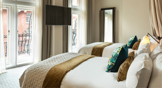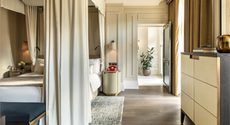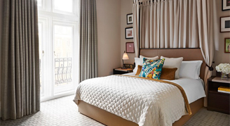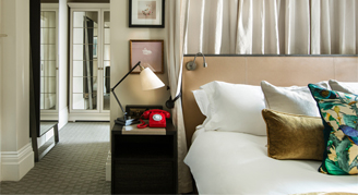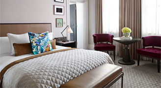 With a nod to 20s glamour and British irreverence, each styled bedroom by Tara Bernerd & Partners reflects the rich history of the hotel.