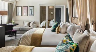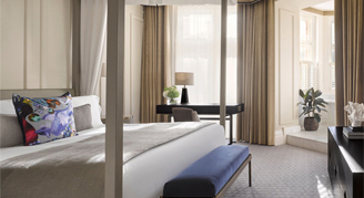 This Suite includes a king-sized bed, park view, a separate sitting and dining area, fireplace, a marble bathroom with a waterfall shower and roll top bath, a walk-in wardrobe and an additional guest bathroom.