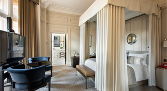 This Suite includes a king-sized bed, park view, a separate sitting and dining area, a roll-top bath and a walk-in rain shower.