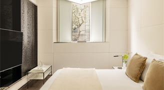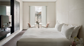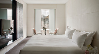 Designed by internationally celebrated architects Foster + Partners, the modern and stylish rooms feature floor-to-ceiling windows offering views of the city or river. Each of the floor layouts are designed around a central pyramid spanning throughout all 10 floors of the hotel, creating spacious and aesthetically pleasing corridors clad in Nero Marquina marble. All rooms are non-smoking and have individually controlled air conditioning and heating. Additional features include white leather walls, Nespresso machine, ambient mood lighting, media hub, desk with built-in adapters, laptop size safe with power and complimentary high speed Wi-Fi.
