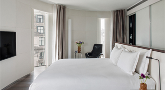 Where simplicity meets urban elegance. These rooms feature a king-size bed and a bathroom with a Balinese shower and C.O. Bigelow toiletries.