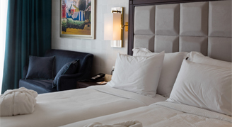 A modern hotel with classical elements, refurbished and opened in September 2016. Enjoy the views of Athens and the Acropolis from the restaurant, bar or the small swimming pool at the roof terrace on the 10th floor. Modern, bright atrium with 24-hour reception, lounge, café and lounge bar.