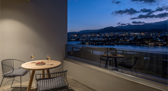 Double room with sea view, recently renovated in a modern boho style . Positioned to bask in the warm rays of the setting sun and sweeping views of Mirabello Bay and Agios Nikolaos.