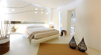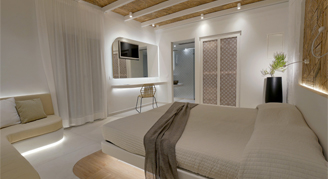 Superior rooms combine natural elements found in Mykonian landscape with ambient lighting and futuristic technological features.