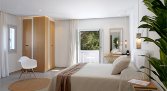Superior rooms combine natural elements found in Mykonian landscape (natural stone, bamboo and wood) with ambient lighting and futuristic technological features to warm you up before you start to explore magical Mykonos.