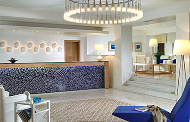 • This newly renovated hotel stands majestically on a private peninsula, offering welcoming services, lovely natural surroundings and stunning views of the Aegean Sea.