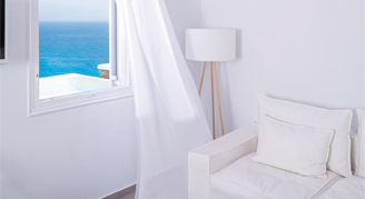 Rooms are decorated in a minimal style with fine elegance to combine the luxury of the Cycladic tradition with modern comforts and amenities. All guest rooms are nonsmoking.