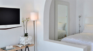 Overlooking the Caldera, Junior Suites are freshly renovated, embodying the ultimately chic character of this unique boutique hotel in the Oia with stylish simplicity.