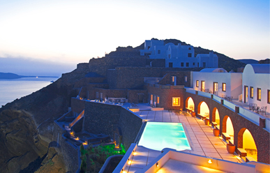 Mykonos, 84600, GreeceBuilt into the cliffs of Mykonos Island, this jewel amongst luxury boutique hotels offers guests breathtaking panoramic views of the Aegean Sea and spectacular sunsets.