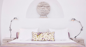 Rooms feature elegantly adorned living and dining areas and a spacious, private balcony with lounge chairs from where guests can admire the view of the caldera and sunset over the indigo sea.