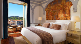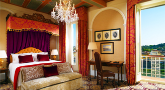 These incredibly spacious suites offer a comfortable and roomy place to unwind, with views of the Arno River and city. Deluxe Suites include a sitting area and butler service, along with a rollaway bed for the third guest.