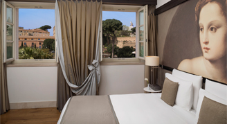 These rooms offer stunning views of the Eternal City or the hotel.