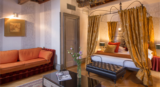 Junior Suites are located in the main building or the annex building and feature a view of the pedestrian-only street Via degli Ibernesi. Rooms are larger than the Superior Room and features include a marble bathroom with Jacuzzi bathtub and the ETRO line of bath products.