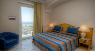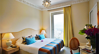 The Grand Hotel Aminta, owned and operated by the same family for over 60 years, is located atop a hill overlooking the city center of Sorrento where one can experience fantastic views of both the sunrise and the sunset. The exterior of the hotel is surrounded by lavender plants, olive trees, and bougainvillea. The lush pool area includes a bar and occasional live music. Many rooms feature balconies and views of the imposing Mount Vesuvius. The hotel provides complimentary Wi-Fi and a courtesy shuttle bus to take you to and from downtown Sorrento while operating with a homey and familial touch.