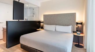 Offering a king bed and an open-plan bathroom with a rain shower. Located on floors 12 - 18, start the day with an espresso and your yoga mat. Breakfast is served at Cielo Skybar restaurant.