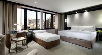 Rooms are located on the upper floors of the hotel and feature views of Barcelona.