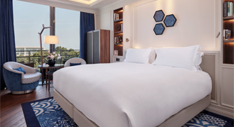 All rooms feature a functional workspace, a 50" LCD screen, complimentary Wi-Fi and cable internet connection, and a bathroom with an invigorating rainfall showerhead.