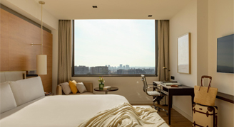 Enjoy a unique panoramic view of the mountains in this space located on floors 10 through 15. It features a bedroom with king-size bed or two queen beds, work desk, and bathroom with walk-in shower. Exclusive access to our private Lounge and other personalized services included