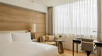 Take a break in this distinguished suite overlooking the city or the mountains. This room features a bedroom with a king-size bed, a large separate living room, a bathroom with bathtub, and toilet. Located on floors 1, 2, 14, and 15, this room includes unlimited access to the private lounge and exclusive benefits.