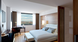 Enjoy spectacular views of Barcelona thanks to its privileged location on floors 10 through 15 of the hotel. It features a king-size bed or two queen beds, bathroom with walk-in shower and a desk. Includes exclusive access to our private lounge along with other unique experiences.