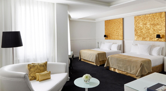 Rooms designed specifically for families of two adults and two small children. They face an inner courtyard and are elegantly decorated. Equipped with two 135cms beds and glass paneled bath integrated into the bedroom.