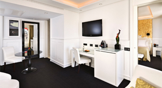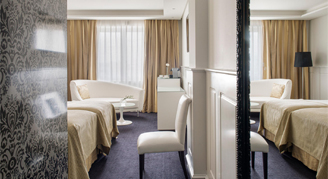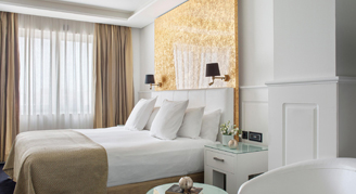 Delicate and elegant, the Supreme Rooms are romantic rooms facing an inner courtyard and are decorated in rich white and gold tones in a golden Belle Époque style. A round bathtub integrated into the room offers a romantic and cozy atmosphere.